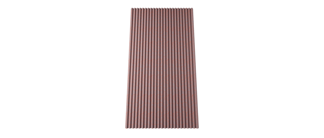 一塊多富瑞波形瀝青防水板,尺寸為長(zhǎng)2000mm×寬1110mm,面積2.22㎡,厚度2.6mm,整張重量為7.1kg,每平方的重量?jī)H約為3.2kg。